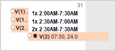available on the Advanced calendar. Add: Inserts a work code. Off-Roster: Inserts a work code that may require advanced data entry, such as accrual balances. Approve: Approves work code requests. Roster: Opens the Roster on the selected date. Picklist: Displays a list of people sorted by opportunity indicators as defined by your organization. The Picklist presents a general idea of where a person stands for the next open job opportunity. This list does not factor specific vacancy requirements, this means it is possible for a candidate with “X” specialty who is at the bottom of the list to surpass other people on the picklist if no one else has “X” specialty. Reports: Opens the Reports area. |