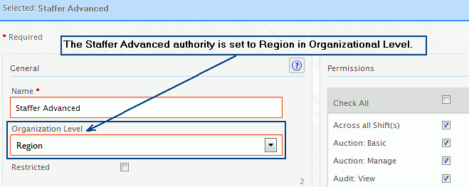 The authority assigned to the user grants access to each area below the user’s organizational level of authority. This information must be factored in when creating authorities and building the organizational structure as this may potentially affect supervisor privileges when approving time, managing, and scheduling personnel.