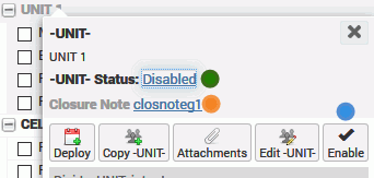 To clarify, suppose you rename the term Disabled to Closed, this means the Disable Unit popup would show Closed next to the Status, but the quick Disable button shows Disabled. In other words, changing disabled/enabled terminology will not affect other areas of the application where the terms appear.