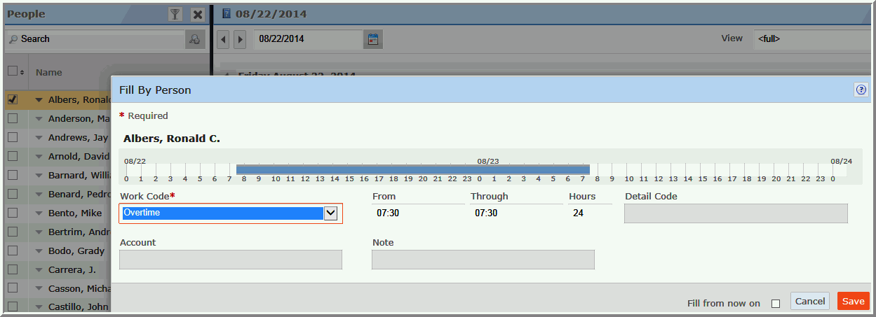 release the mouse pointer to open Fill By Person.