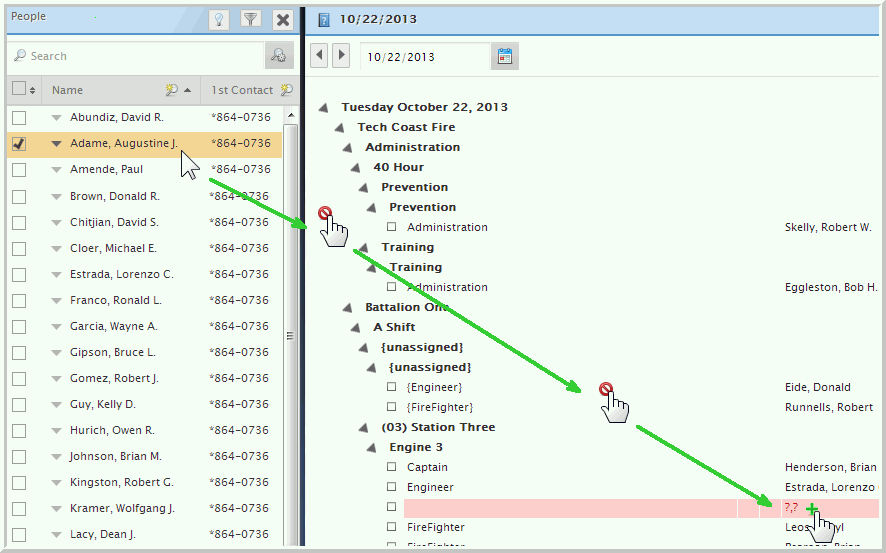 person to the desired vacancy. When the green plus sign enables,