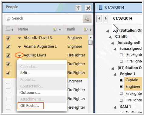 The task below shows how to enable the Off-Roster feature using the People Filter on the Roster:
