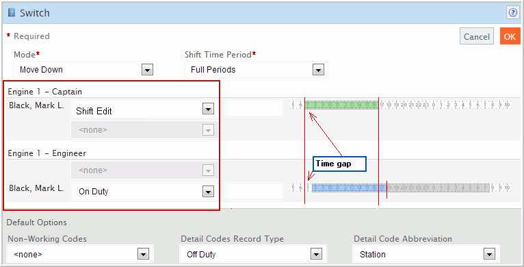 on-duty personnel on the Roster into job vacancies where the shift