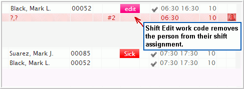 A Shift Edit or similar work code is