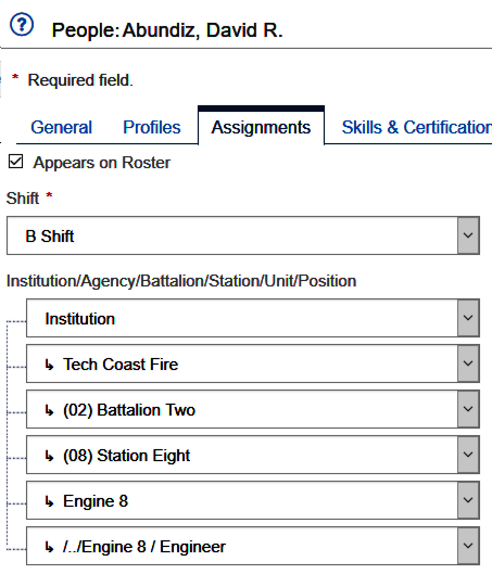 The shift assignment is the person’s assignment location. This is found in person > Assignment tab. This application factors the active assignment for the target date.
