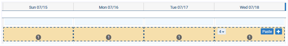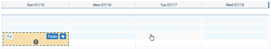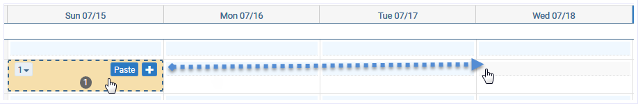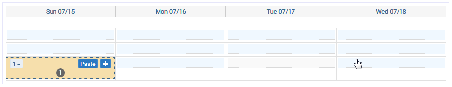 Ctrl + Click - To select days in any order. Click the desired day, press and hold the CTRL key, then click the days (cells) desired. See topic, “Select All | Clear All Blueprints on the Planning Board” for additional CTRL + Click functions available as of application version 7.1.4.